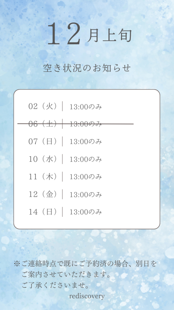 12月上旬の空き状況