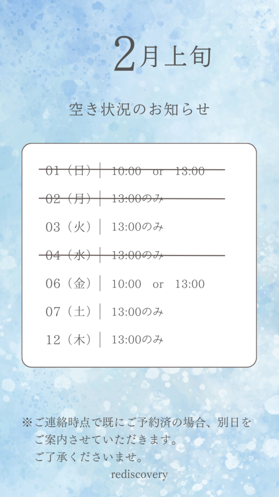 2月上旬の空き状況