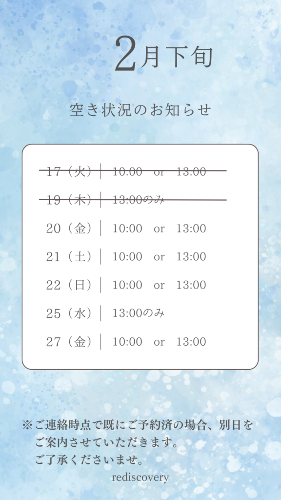 2月下旬の空き状況