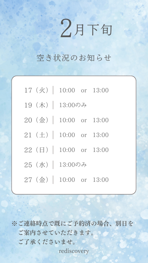 2月下旬の空き状況