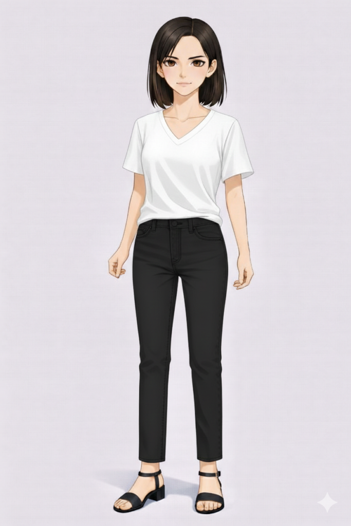 水色デニムでも似合わせは可能ですが、似合う軸で選ぶなら黒の方が本来の魅力が出やすい傾向があります。