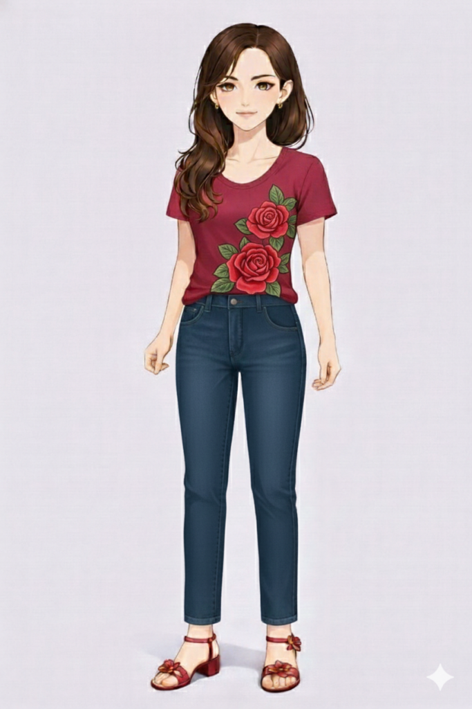女性らしい印象タイプに似合うTシャツの柄