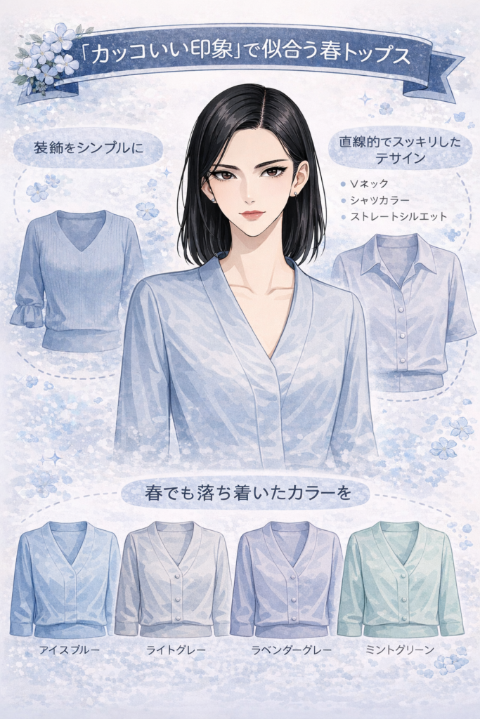 春は明るい色が増えますが、明るくても落ち着いたカラーを選ぶと大人っぽさを活かせます。
